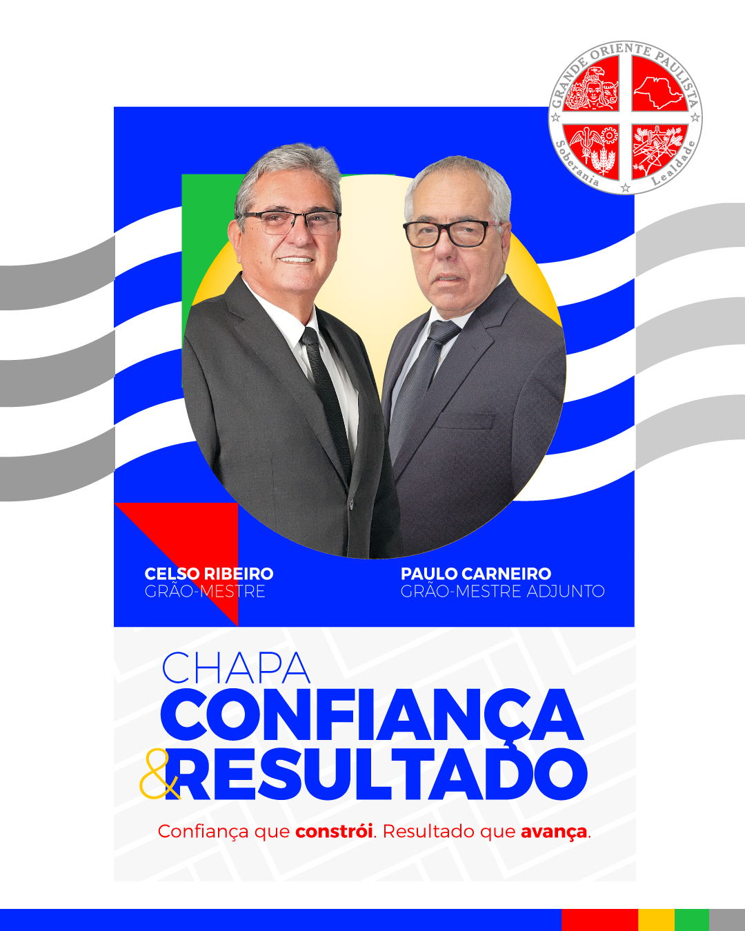 Os irmãos CELSO RIBEIRO e PAULO CARNEIRO são os novos Grão Mestres eleitos e que irão ocupar os cargos de Grão Mestre e Grão Mestre