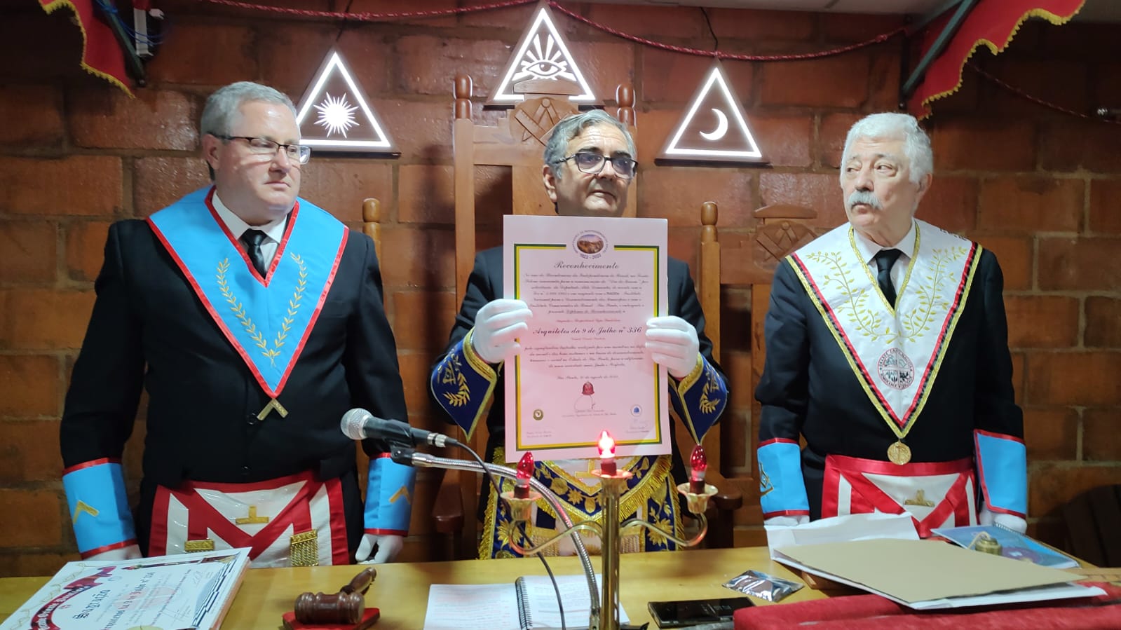 A Loja ARQUITETOS DA 9 DE JULHO 336 foi agraciada com um Diploma de Reconhecimento outorgado pela Assembleia Legislativa do Estado de São Paulo, na pessoa do Deputado Estadual Aldo Demarchi, por ocasião do Dia do Maçom comemorado no dia 20 de agosto, e o Sereníssimo Grão Mestre FERNANDO FERNANDES foi o portador da honraria que foi entregue à Loja, nas mãos do Venerável Mestere