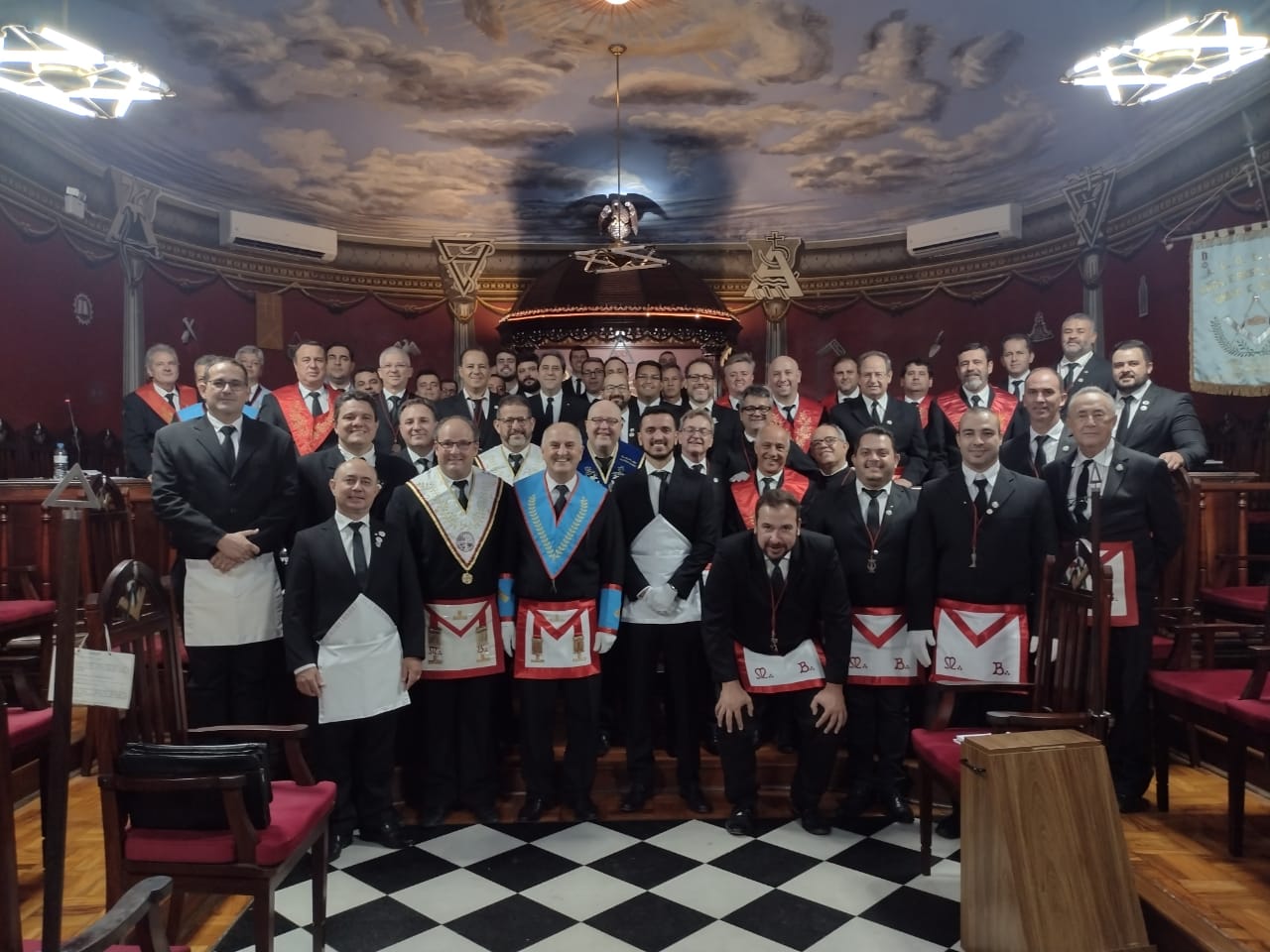 Presidida pelo Venerável Mestre Gilmar Bianco os irmãos do quadro realizaram um belo trabalho ritualístico na sessão de Iniciação do agora irmão aprendiz Hector Fernandes Ferreira, empresário de 36 anos, e que agradou a todos os irmãos do quadro e visitantes que estavam presentes participando da sessão .