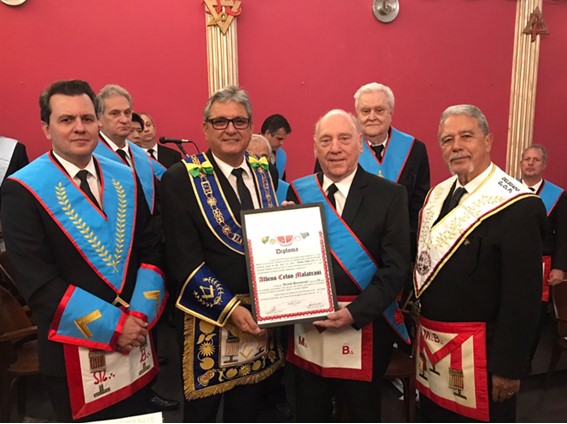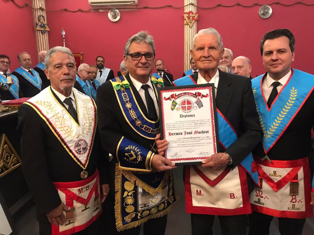 Numa iniciativa da atual diretoria da Loja que é comandada pelo Venerável Mestre Carlos José Olivetti Fernandes, os irmãos foram homenageados por sua atuação em prol da Loja, e que merecem esse reconhecimento em vida por tudo que já construíram de positivo pela nossa Ordem e por aquela Loja em particular, pois completar 50 anos de participação na Ordem Maçônica é um grande feito.