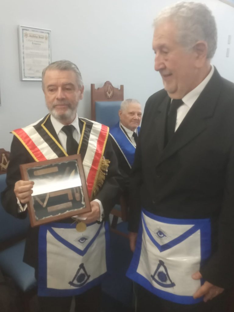 Presentes na Sessão Magna de Aniversário o Grande Secretário de Relações do Interior da Macrorregião II Ricardo José Pauletti, e também seu Adjunto Marcos Seige Sakamoto, e o Delegado Regional da 4ª RM Oswaldo Colete Junior.
