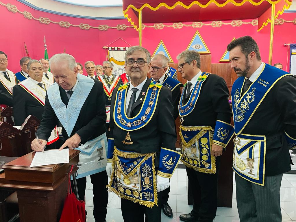 Pelo Grande Oriente Paulista participaram desta importante cerimônia o Sereníssimo Grão Mestre FERNANDO FERNANDES, e o Sereníssimo Grão Mestre Adjunto CELSO RIBEIRO, o Grande Secretário de Relações do Interior Henrique Affonso de André Sobrinho e o Grande Secretário de Ritualística do Rito Moderno Marco Aurelio Junqueira Furlan. Pelo Sublime Capítulo do Rito Moderno da Oficina Chefe Para o Brasil participaram o Soberano Grande Inspetor SERGIO LUIZ BENVENUTO e o Past Soberano Grande Inspetor JAIME MONSALVARGA.