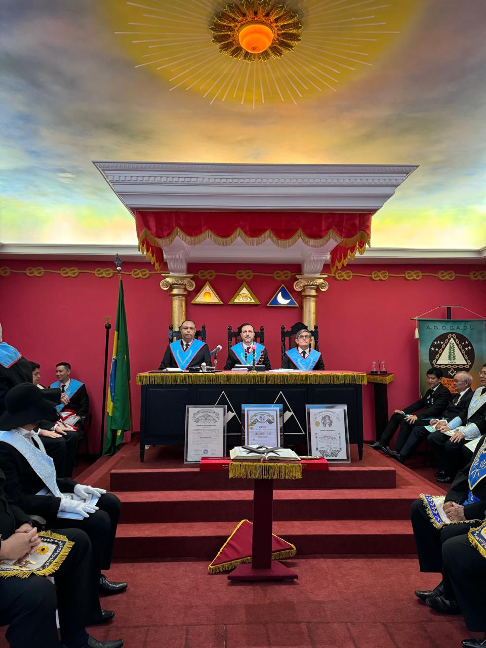 Parabenizamos também e desejamos sucesso ao novo Venerável Mestre empossado, irmão Alexandre Dequech Corrado, que com certeza irá realizar uma bela gestão juntamente com sua diretoria, e parabenizamos também ao irmão João Ricardo Sereguete de Freitas pelo belo trabalho realizado em sua gestão 2023/2024, juntamente com sua diretoria, estimulando uma educação maçônica de qualidade, fazendo com que os irmãos do quadro realizem constantemente trabalhos maçônicos de grande conteúdo, e com isso promovendo o crescimento cultural de todos os irmãos do quadro.