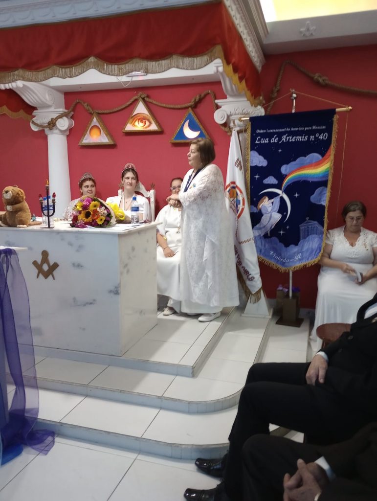 Foi eleita como Ilustre Preceptora da ASSEMBLEIA LUA DE ÁRTEMIS 040 e já empossada a jovem Roberta Raisner de Andrade Castro, a Mãe Conselheira Maricy de Francesco Bento, e como Presidente do Conselho o irmão Roberto Castro.
