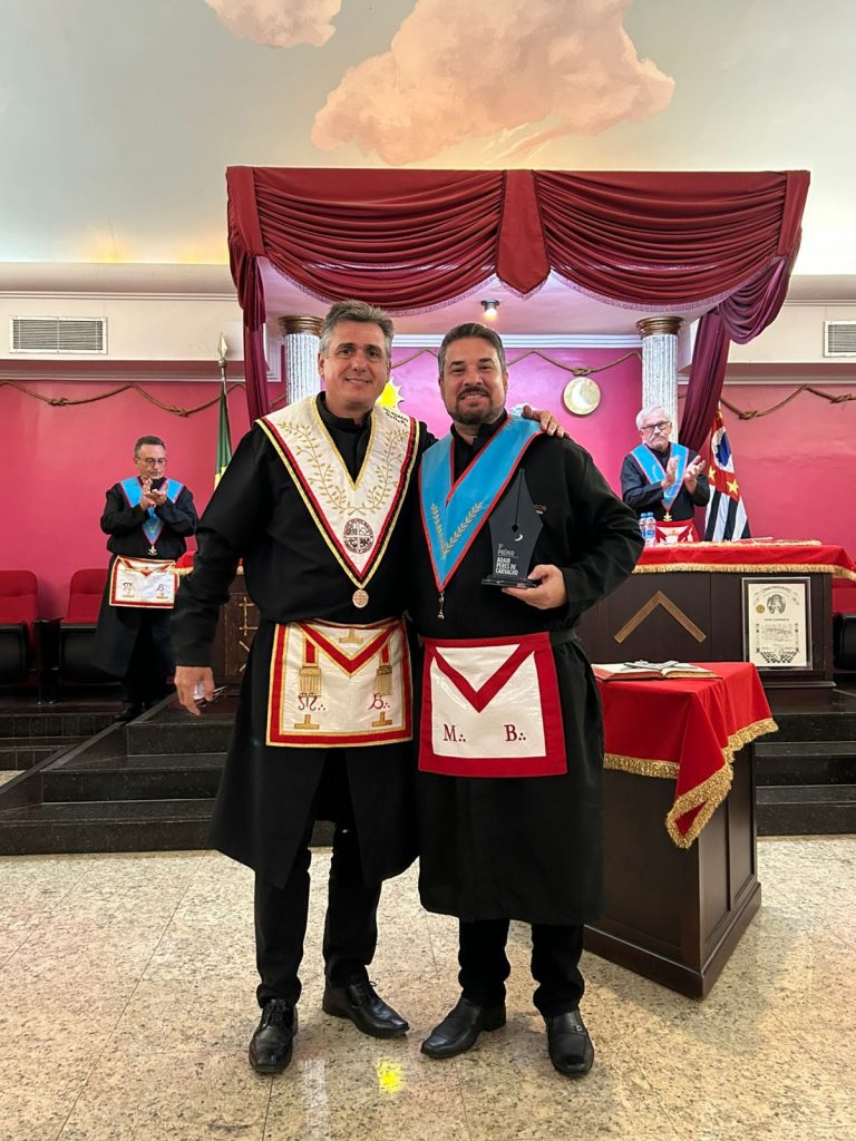 Foi uma Sessão muito especial, pois foi feita a entrega do troféu vencedor ao irmão Flavio José Sambatti Pieralisi, ganhador este ano na categoria “Companheiro Maçom”, sendo vencedor seu trabalho intitulado “A PROFUNDIDADE DA PALAVRA DE PASSE NO GRAU DE COMPANHEIRO MAÇOM”, que com muita honra recebeu o cobiçado troféu das mãos do Delegado Regional da 18ª Região Maçônica irmão Dani Ricardo Batista Mateus. O irmão ganhador também é um dos irmãos que atuam como Embaixadores da Cultura junto à Grande Secretaria de Educação e Cultura.