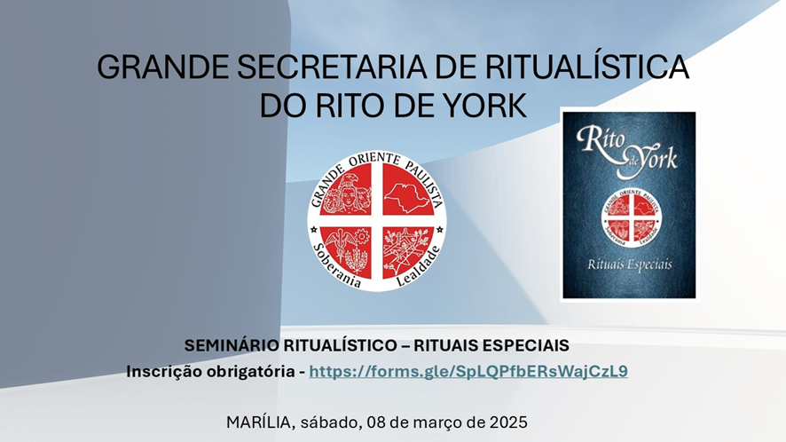 No início do mês de março, no oriente de Marilia, tendo como Loja anfitriã a Loja MÁRCIO ANTONIO DO AMARAL 446, a Grande Secretaria de Ritualística do Rito de York, que tem como Grande Secretário o irmão Edson Cardoso Ribeiro Junior, organizou um SEMINÁRIO RITUALÍSTICO – RITOS ESPECIAIS, onde comparecerem irmãos das várias Lojas que praticam o Rito em vários orientes.