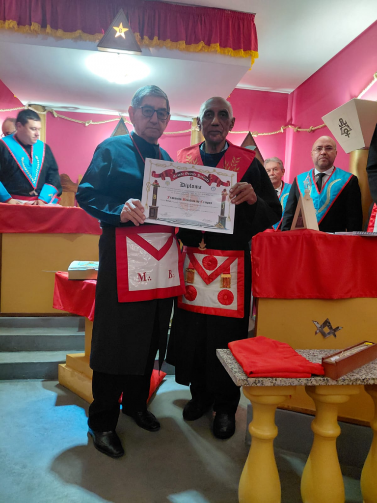 Nesta Sessão foram homenageados como Maçom Emérito – 25 anos o irmão Jairo Antunes dos Santos e, com o título de Remido, o irmão Francisco Benedito dos Santos.