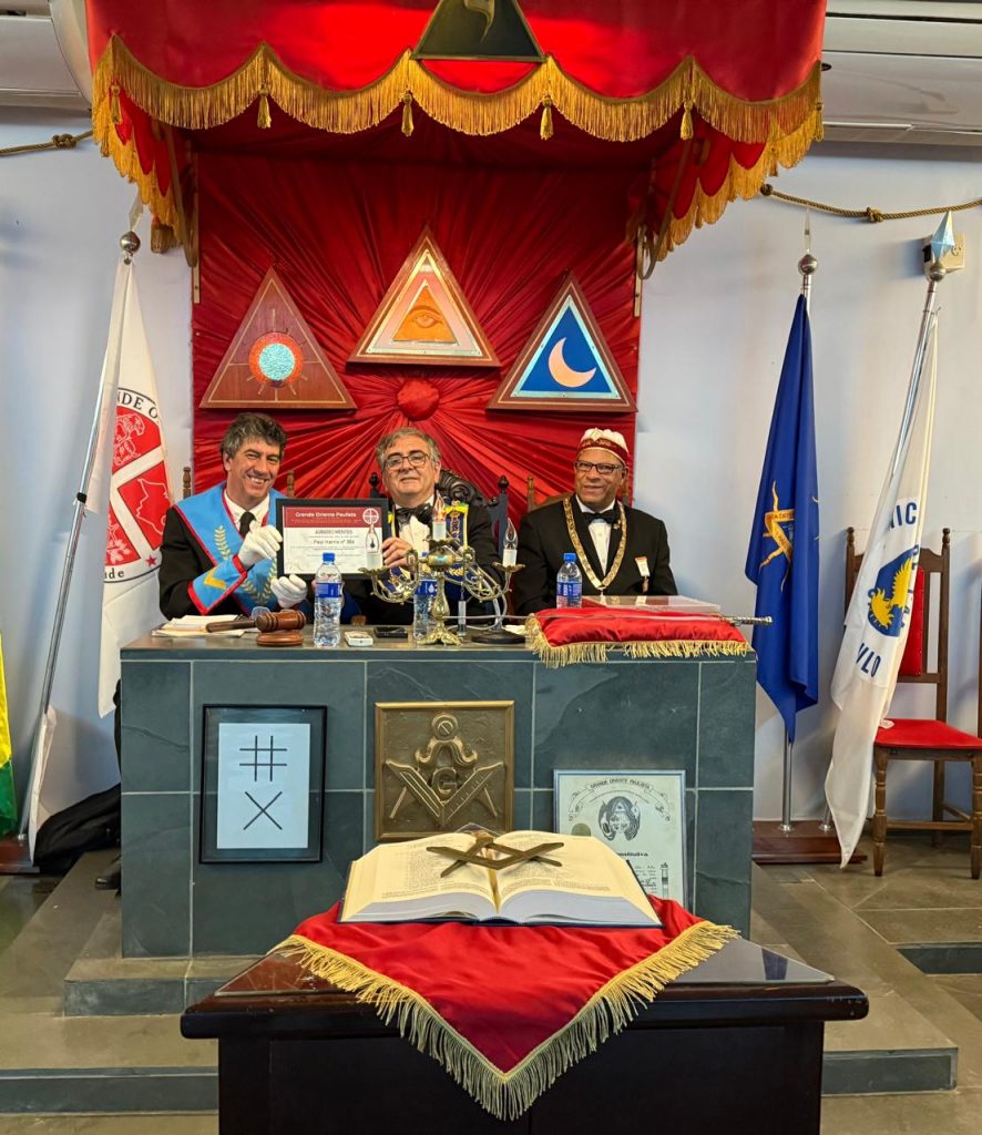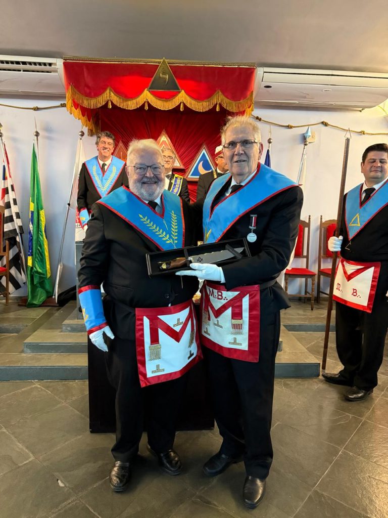 Acompanhando o Sereníssimo Grão Mestre FERNANDO FERNANDES nesta Sessão Magna de homenagem, estiveram presentes o Grande Secretário de Relações do Interior da Macrorregião 12-Campinas, Roberto Castro, o Grande Secretário de Relações do Interior da Macrorregião 10-Capital, Eduardo de Almeida Soeiro, o Grande Secretário Adjunto de Ritualística do Rito de York Guilherme de Almeida Gay, e o Delegado Regional da 32ª RM Sandro Rogério Porfírio de Souza. Presente também prestigiando ao irmão José Pallone Neto o Soberano Grande Comendador do Supremo Conselho dos Graus Escoceses 4 a 33 para o Brasil, José Aparecido Lopes.
